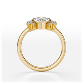• Wedding Band: To achieve a flush fit, we recommend pairing with a v-shaped wedding band.