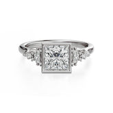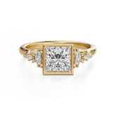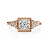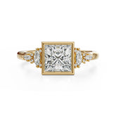 Wedding Band: The slightly elevated setting is designed to allow our plain flat wedding band to sit flush. We cannot guarantee compatibility with wedding bands from other jewelry brands.