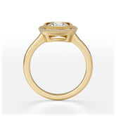 • Wedding Band: This design will not sit flush with a straight wedding band. We recommend pairing it with one of our custom-curved or v-shaped wedding bands for a seamless, complementary look.