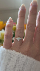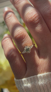 The Bloom Ring was named for the moment a flower reaches its fullest expression—soft petals unfurled, luminous and alive. At the center, you can choose either a 4 mm round green sapphire or a natural white diamond, each surrounded by F VS white diamonds meticulously arranged to resemble a blossom in full bloom. Each stone is hand-set to form a graceful, rounded silhouette that evokes both elegance and sentiment.