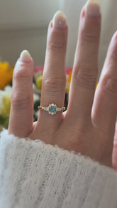 Along the band, a few additional diamonds cascade gently down the shank, like sunlight glinting on dew-covered stems. Altogether, the accent stones total 0.27 carats of natural F VS diamonds—adding just the right amount of brilliance to this delicate and radiant design.