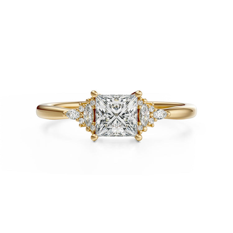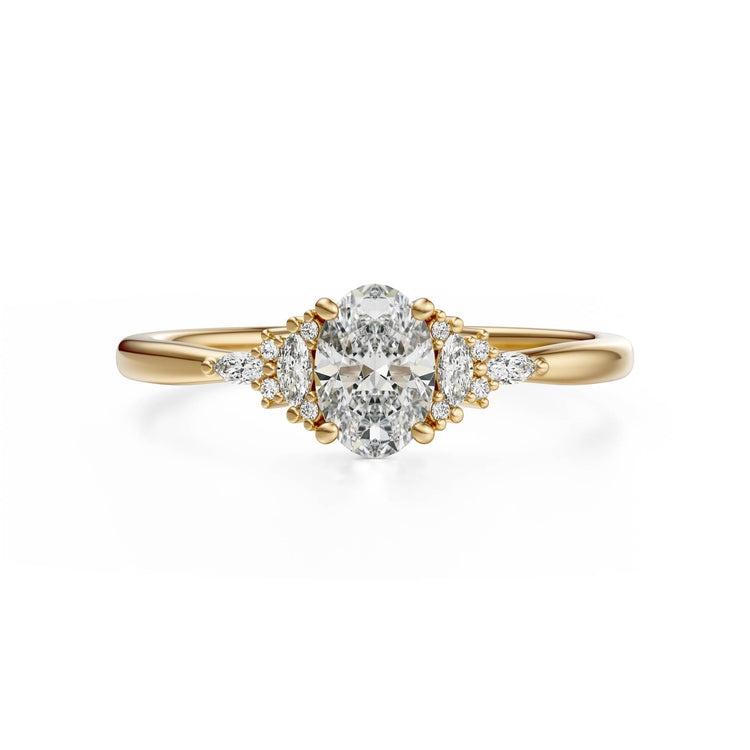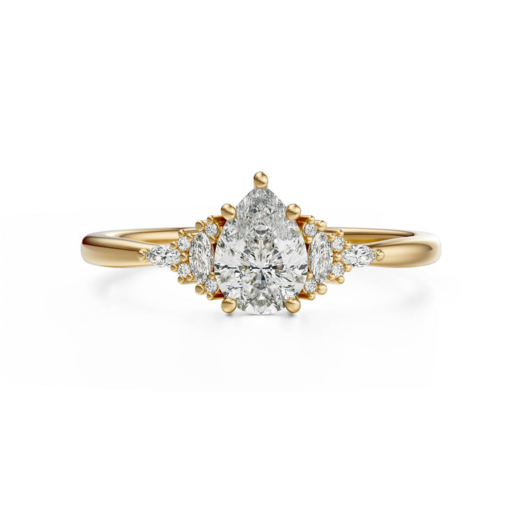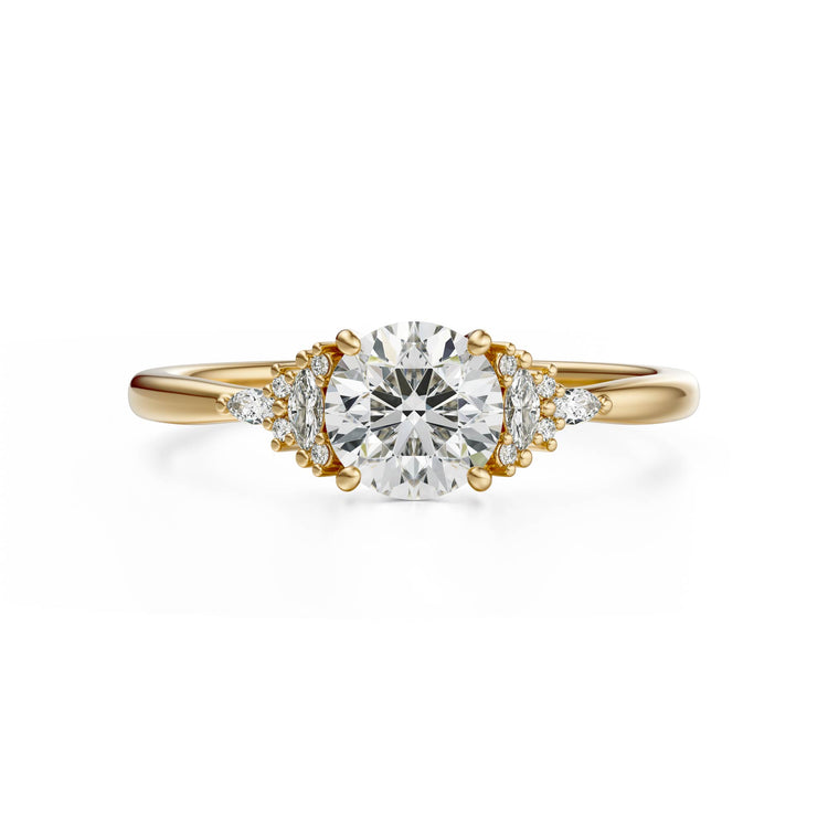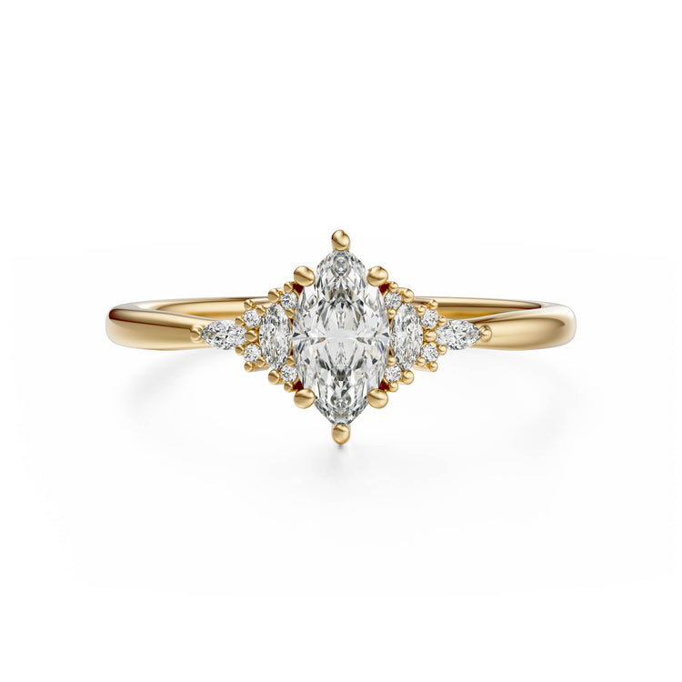 Wedding Band: This design will not sit flush with a straight wedding band. We recommend pairing it with one of our custom curved or V-shaped wedding bands for a seamless, complementary look.