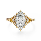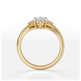 Wedding Band: To achieve a flush fit, we recommend pairing with a v-shaped wedding band.