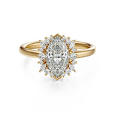 Wedding Band: To achieve a flush fit, we recommend pairing with a v-shaped wedding band.