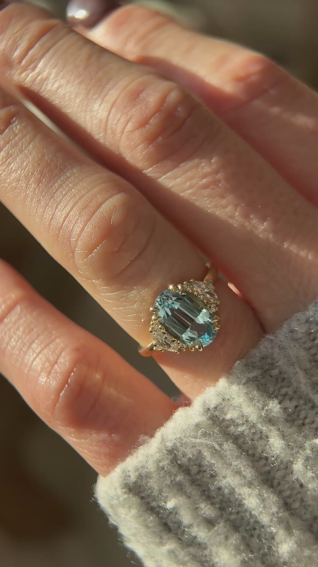 Aquamarine is known for its color stability. Once enhanced by heat treatment—a common and permanent process used to deepen its blue hue—the color remains consistent over time. This treatment is stable and does not cause the color to fade or change under normal conditions. We do not typically work with heat treated aquamarine, and all treatments are disclosed on our colored gemstones.