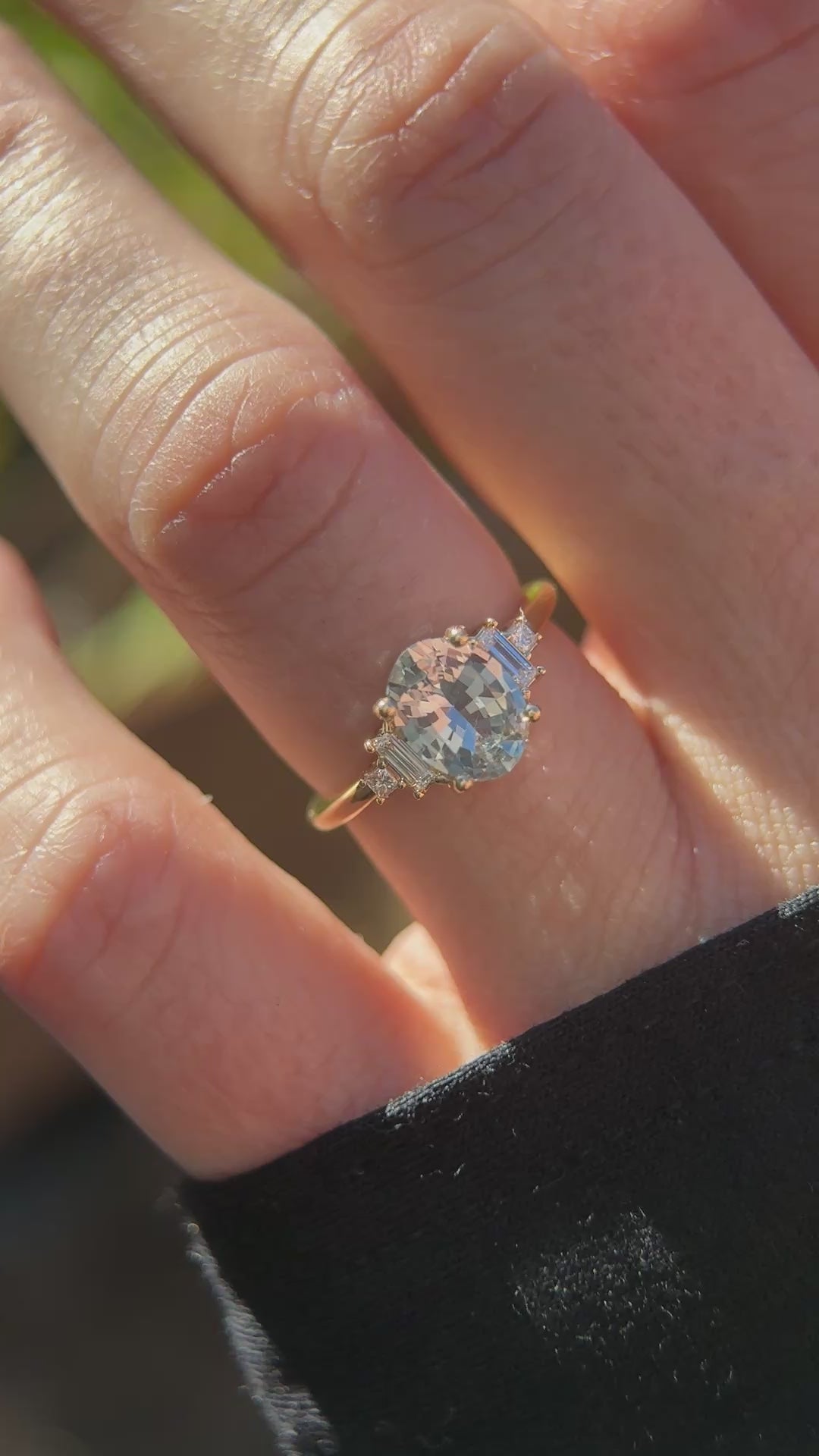 The Mira Ring | 1.77 CT Oval Pastel Minty Steel Blue Sapphire - Lavender Creek Gems
