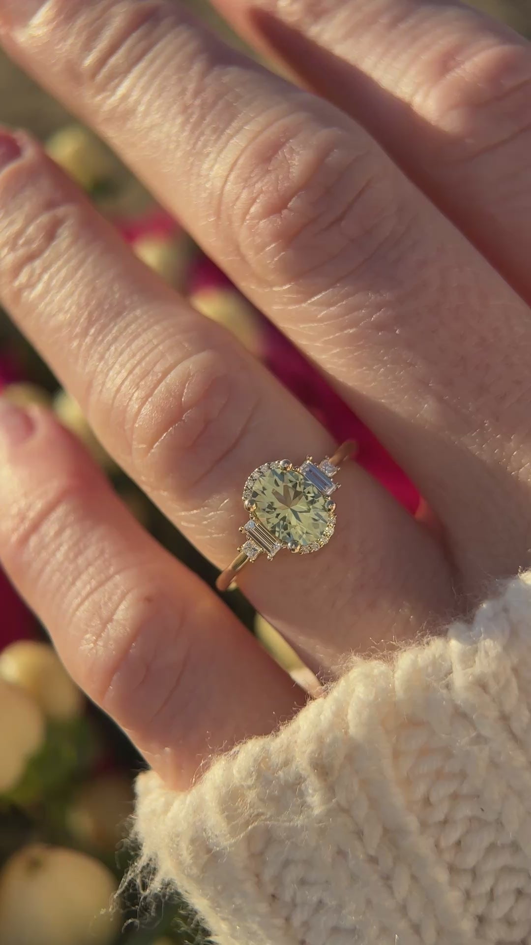 The Sura Ring | 1.27 CT Oval Sage Green Tourmaline - Lavender Creek Gems