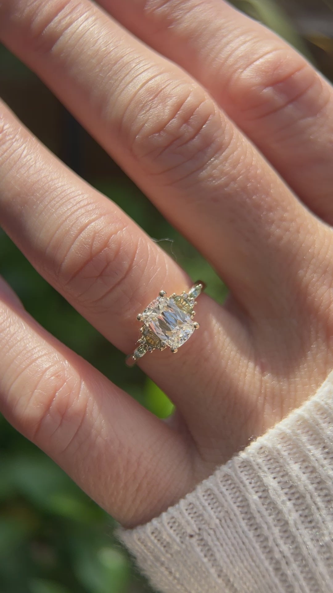 The Maeve Ring | 1.62 CT Antique Cushion Diamond + Green Sapphire